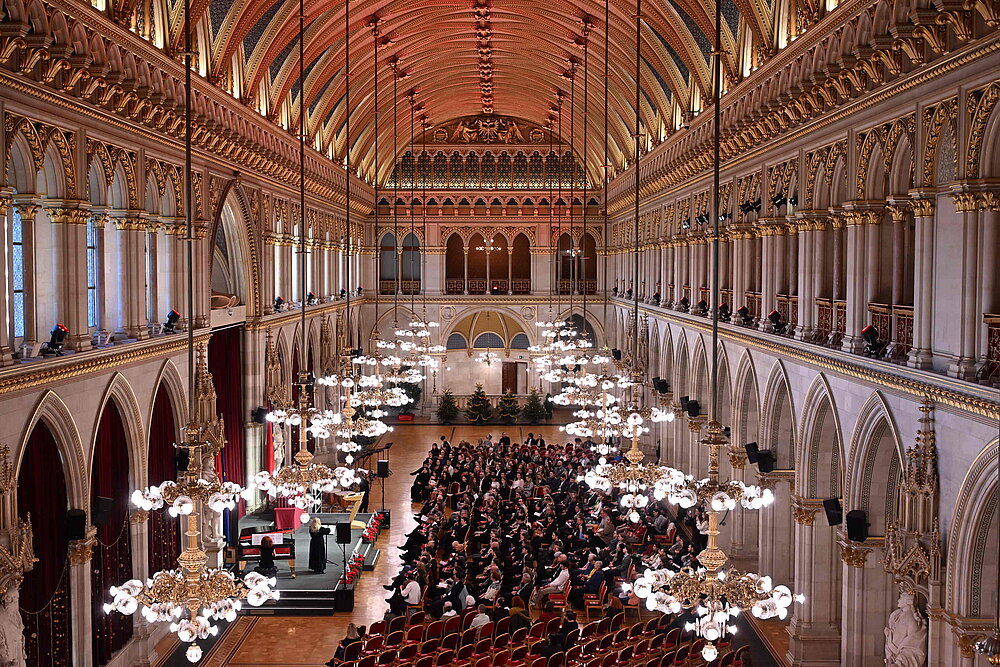 Auch heuer feiern unserer Absolvent*innen den erfolgreichen Studienabschluss im prachtvollen Festsaal des Wiener Rathauses. Vertreter*innen der MUK und der Stadt Wien überreichen den frischgebackenen Bachelor- und Masterabsolvent*innen feierlich ihre Urkunden und gratulieren zum Abschluss einer hochqualifizierten und international anerkannten Ausbildung. Familie, Freund*innen und Lehrende sind herzlich eingeladen, diesen besonderen Moment gemeinsam zu feiern. Ein musikalisches Rahmenprogramm verleiht der Feier ihren außergewöhnlich festlichen Charakter.