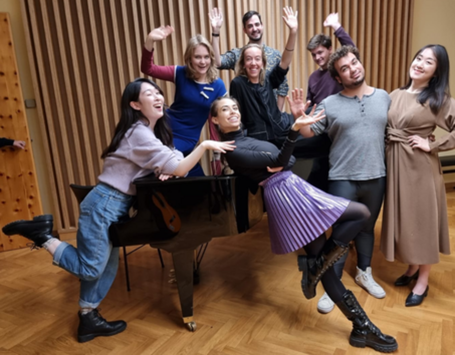 Mit Miko Abe, Paul Yechan Bahk, Cosima Büsing, Karen Danger, Christoph Gerhardus, Celina Hubmann, Yejin Kang, Constantin Müller und Alejo Ruiz (alle Studierende des Universitätslehrgangs Klassische Operette der MUK).
