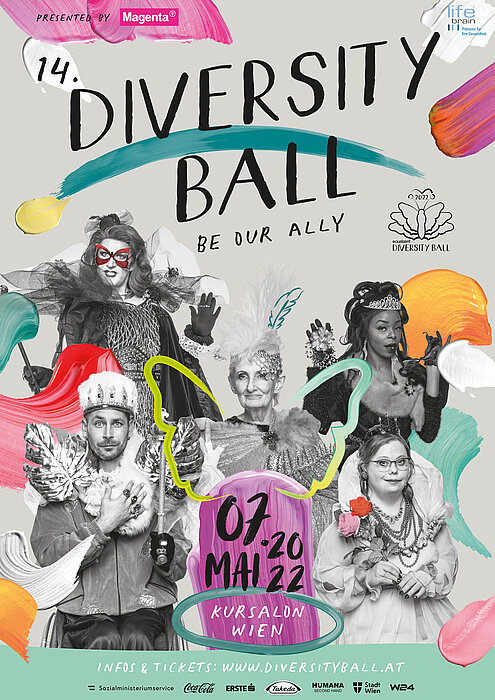 Der 14. Diversity Ball steht unter dem Motto „BE OUR ALLY“. Als „Ally“ bezeichnet man eine Person, die sich für die Rechte von marginalisierten Personen und/oder Gruppen einsetzt. Im Zuge einer rauschenden Ballnacht wird am 7. Mai marginalisierten Personen und Gruppen Sichtbarkeit verschafft. Die MUK ist Kooperationspartnerin des Diversity Balls und unterstützt die Anliegen der Organisator*innen.