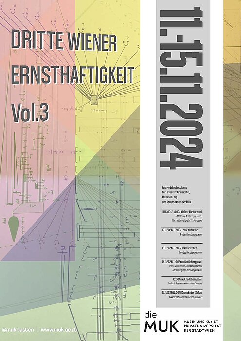 Das Festival Dritte Wiener Ernsthaftigkeit, das sich kritisch hinterfragend in die grandiose Wiener Tradition der Komposition von Wiener Klassik über die dodekaphonische zweite Wiener Schule einreiht findet wegen des großen Erfolgs bereits zum dritten Mal statt — heuer erstmals im MUK.theater.