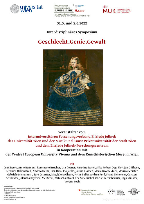 Das Symposium bildet den ersten Höhepunkt des im März 2022 gestarteten Forschungsschwerpunkts „Geschlecht und Gewalt“ des Interuniversitären Forschungsverbunds Elfriede Jelinek, der sich einem zentralen Aspekt im Werk Elfriede Jelineks widmet: der Verbindung von Geschlecht/Gender und Gewalt. Narrative von Geschlecht in Zeiten von Neokonservatismus, Neoliberalismus und Rechtspopulismus werden ebenso untersucht wie Fragen nach struktureller, psychischer, physischer und sexualisierter Gewalt sowie nach Ausbeutungs-, Verdrängungs- und Marginalisierungsmechanismen. Das Symposium fragt nach zeitgenössischen Narrativen von Geschlecht in rechtskonservativen Gesellschaften, inwiefern diese Narrative Gewalt beinhalten oder befördern und welche Auswirkungen sie auf die Position von Frauen in Kunst und Wissenschaft haben.Die Veranstaltungsorte für das Symposium sind bewusst gewählt: Eine Einführung im Kunsthistorischen Museum soll aufzeigen, inwiefern Gewalt gegen Frauen der Kunstgeschichte eingeschrieben ist. Die Central European University Vienna wiederum verbindet nicht nur eine enge Partnerschaft mit dem Interuniversitären Forschungsverbund Elfriede Jelinek, sie verfügt auch über große Expertise, was Fragen nach Gender und Gewalt angeht.