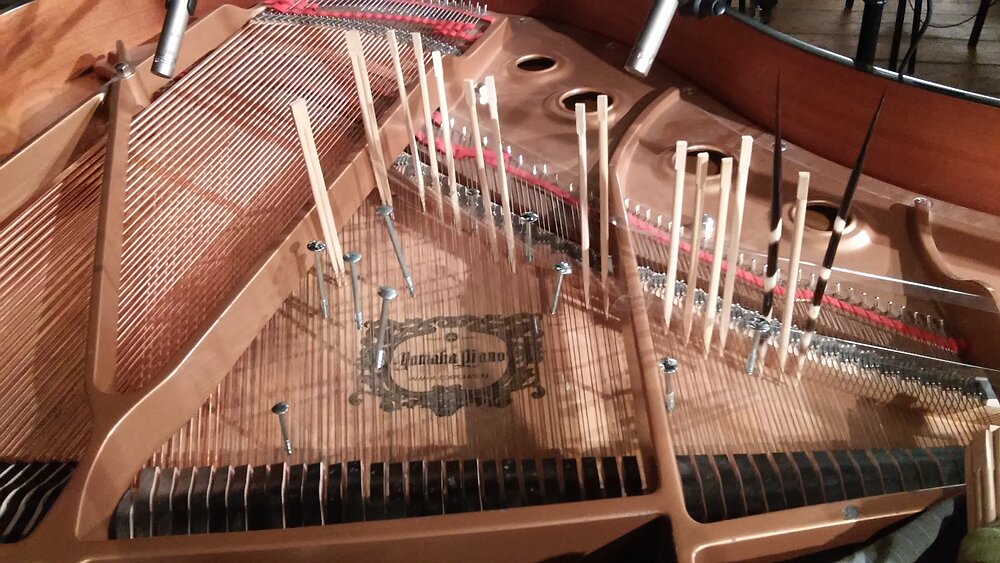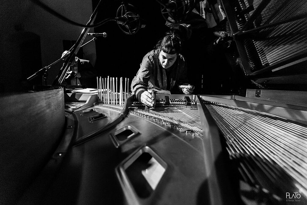 Beide Stücke bewegen sich kreisend in reichen Ober – und Untertonreihen im repetitivem Charakter um Knotenpunkte, die im Klavier gezielt mit Holz und Metall präpariert sind. Im Workshop werden diese Elemente aufgebaut und die Stücke auszugsweise erarbeitet. Dabei werden rhythmische Strukturen wie auch klangliche „Illusionen“, die der kompositorischen Idee innewohnen, probiert und beleuchtet, um damit gleichzeitig auch die kompositorischen Quellen von MNEEM künstlerisch zu beforschen.