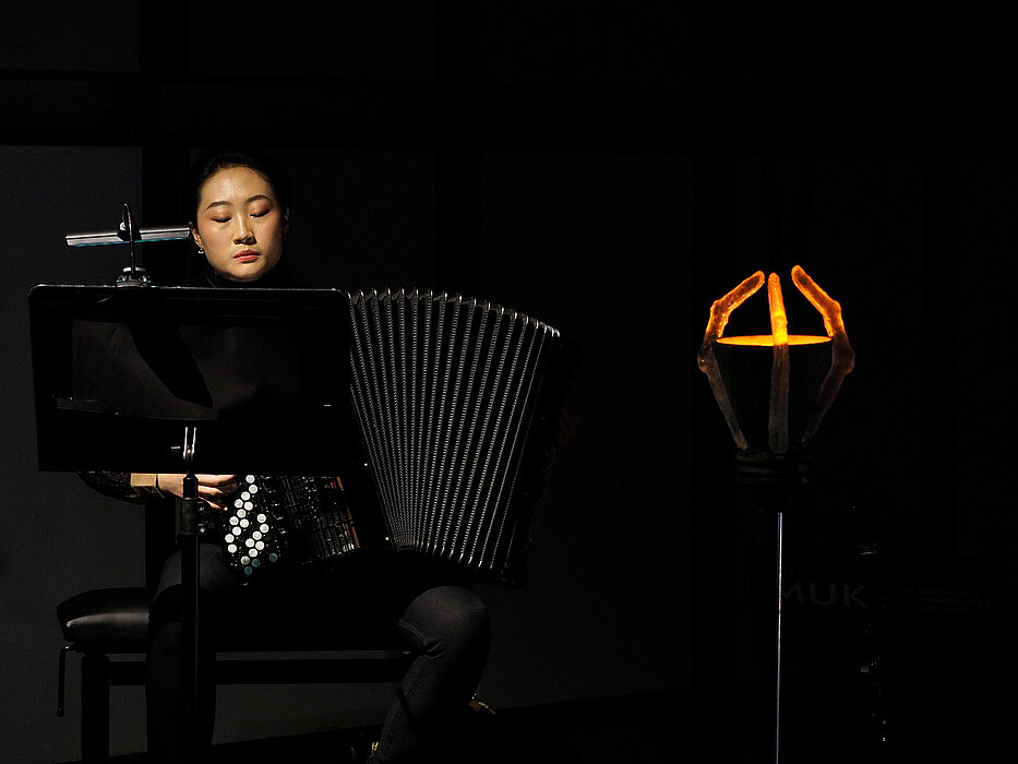 Univ.-Prof.in Dr.in Jean Beers erforscht in ihrer aktuellen künstlerisch-wissenschaftlichen Studie Composer / Performer Relations (SoSe 2022) mit dreißig BA- und MA-Studierenden verschiedener Fachbereiche aus den Fakultäten Musik sowie Darstellende Kunst die Verantwortung der Künstler*innen gegenüber sich selbst, gegenüber dem Werk, gegenüber den Mitwirkenden und schlussendlich gegenüber den Konsument*innen bzw. der Gesellschaft. In experimentellen künstlerischen Kollaborationen werden von Beginn des Kreativprozesses an die Wechselwirkungen zwischen Komponist*innen und Interpret*innen beleuchtet, dokumentiert und analysiert, um praxisbasierte Erkenntnisse und Schnittstellen in der ästhetischen Perzeption der sozialen Interaktionen von Künstler*innen zu generieren. Hierfür wird die künstlerische Interaktion durch die Implementierung systemischer Heuristik erweitert. Mittels sechs verschiedener künstlerischer Ensembles erforschen die Musiker*innen gemeinsam die Instrumental- und Gesangstechniken und kreativen Möglichkeiten. Ziel der Forschung ist es, die kreativ-professionelle sowie die soziale Interaktion zwischen Komponist*innen und Interpret*innen zu fördern und durch inspirierende Offenheit und forschendes Denken künstlerische Synergien zu schaffen sowie Neuland an der Schnittstelle zwischen der Interpretation und der Komposition zu betreten. Diese Studie ist Teil der künstlerischen Grundlagenforschung im Bereich Komposition zum Thema Empathie in künstlerischen Kollaborationen, die seit 2011 unter dem Titel Threefold Challenge: Composer, Performer, Audience unter der Leitung von Univ.-Prof.in Dr.in Jean Beers läuft. Weitere Informationen zu diesem Projekt finden sich auf der Website unter: https://muk.ac.at/forschungsschwerpunkte/kuenstlerische-forschungsprojekte/composer/performer-relations.html