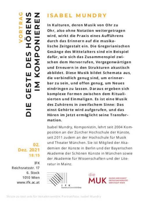 Gäste sind herzlich Willkommen, bitte um Voranmeldung bei w.rademacher@muk.ac.at